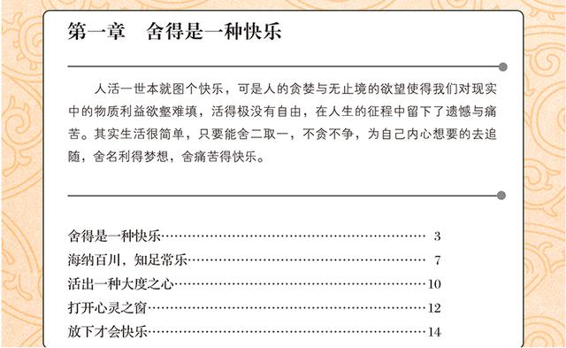 本书涵盖人生哲理、职场、情感、处世等诸多方面的内容,以独特的视角阐明“舍得”是一种大境界。该书从结合生活中的事例,结合舍与得进行评论,用通俗的评议剖析人性的弱点,阐述深刻的生活智慧,并总结出做人做事的成功法则。在快节奏的城市生活中,读来能让人放松心情,积极向上。
