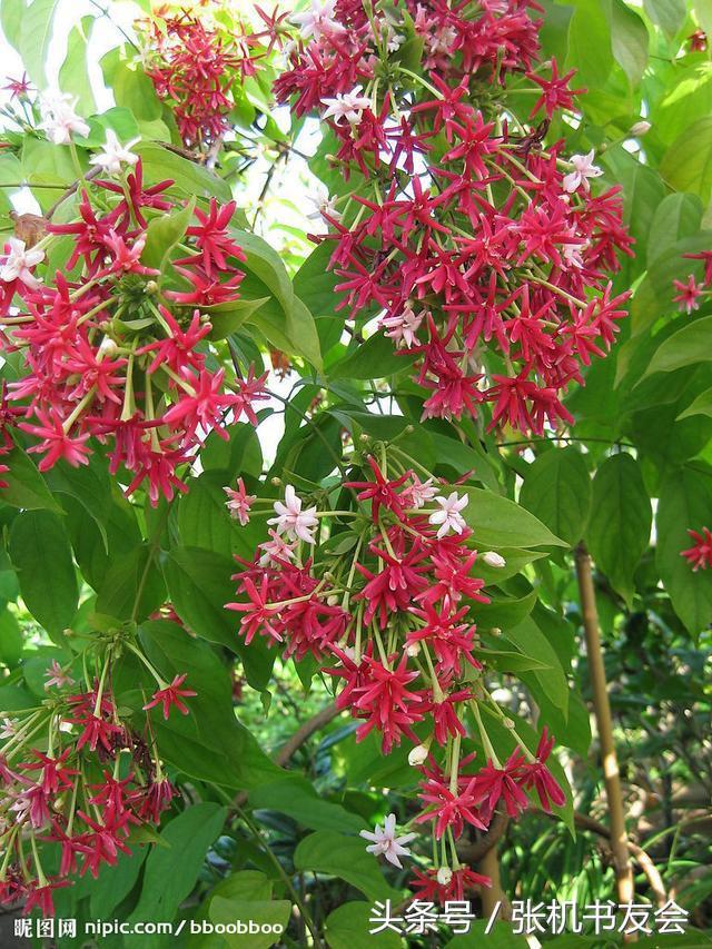 使君子是如此美丽的一种植物,高大繁茂的绿叶间开满一朵一朵红色小花,明媚娇艳,甚是动人,有种惊艳的感觉。