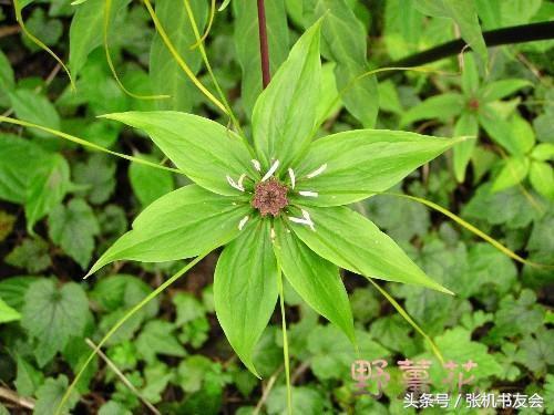 别名:七叶一枝花,又名七叶莲、重楼、铁灯台,因为七叶轮生顶部开一支黄绿色花朵而得名,算是植物中的异类。