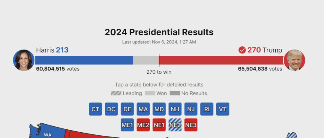 在第47届总统选举中,DDHQ率先宣布川普当选总统。