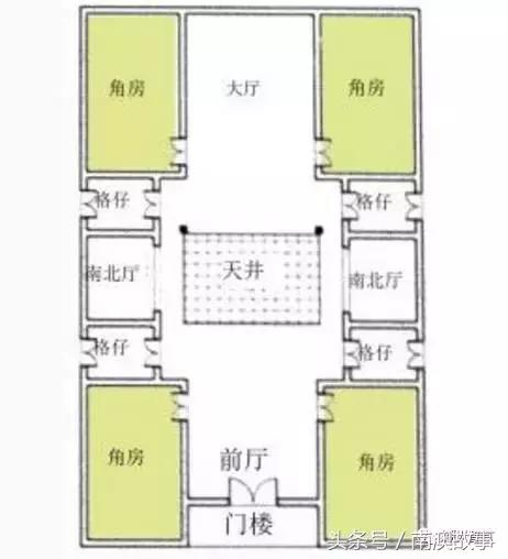 下山虎式是一种独家小院式,适应中小型家庭。它是由大厅、两大房、两小房、天井、门楼仔等组成,一般有一口井,它是一套居住条件基本完备的小院落。