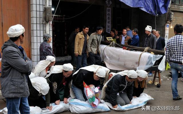 这个仪式要求所有出殡的人都要参加,每个人手中都要拿一个小馒头和一枚硬币,逝者的大儿子或大女儿要扛着引魂幡,儿媳或女婿抱着骨灰盒,土葬的则是抱着遗像。