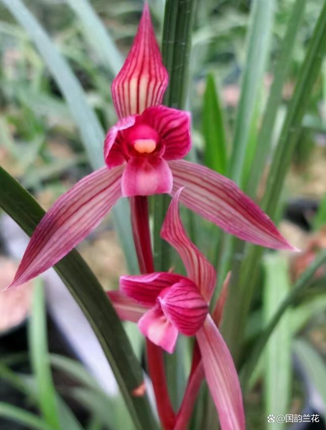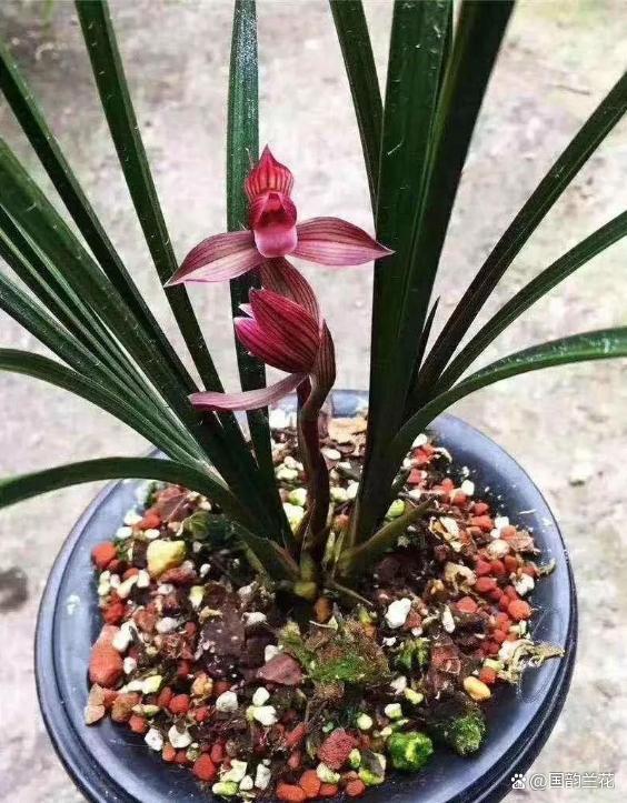其花量亦是可圈可点,一箭双花乃至三花齐放,春剑之特性尽显无遗。每年花期如约而至,朵朵如一,精准无误,让人不禁感叹大自然造化的精妙绝伦。都江红素,作为我国十大红素之一,不仅填补了四川红素的空白,更在兰花史上留下了浓墨重彩的一笔,为后世红素鉴赏树立了标杆,其功勋卓著,实乃兰花界之幸事。