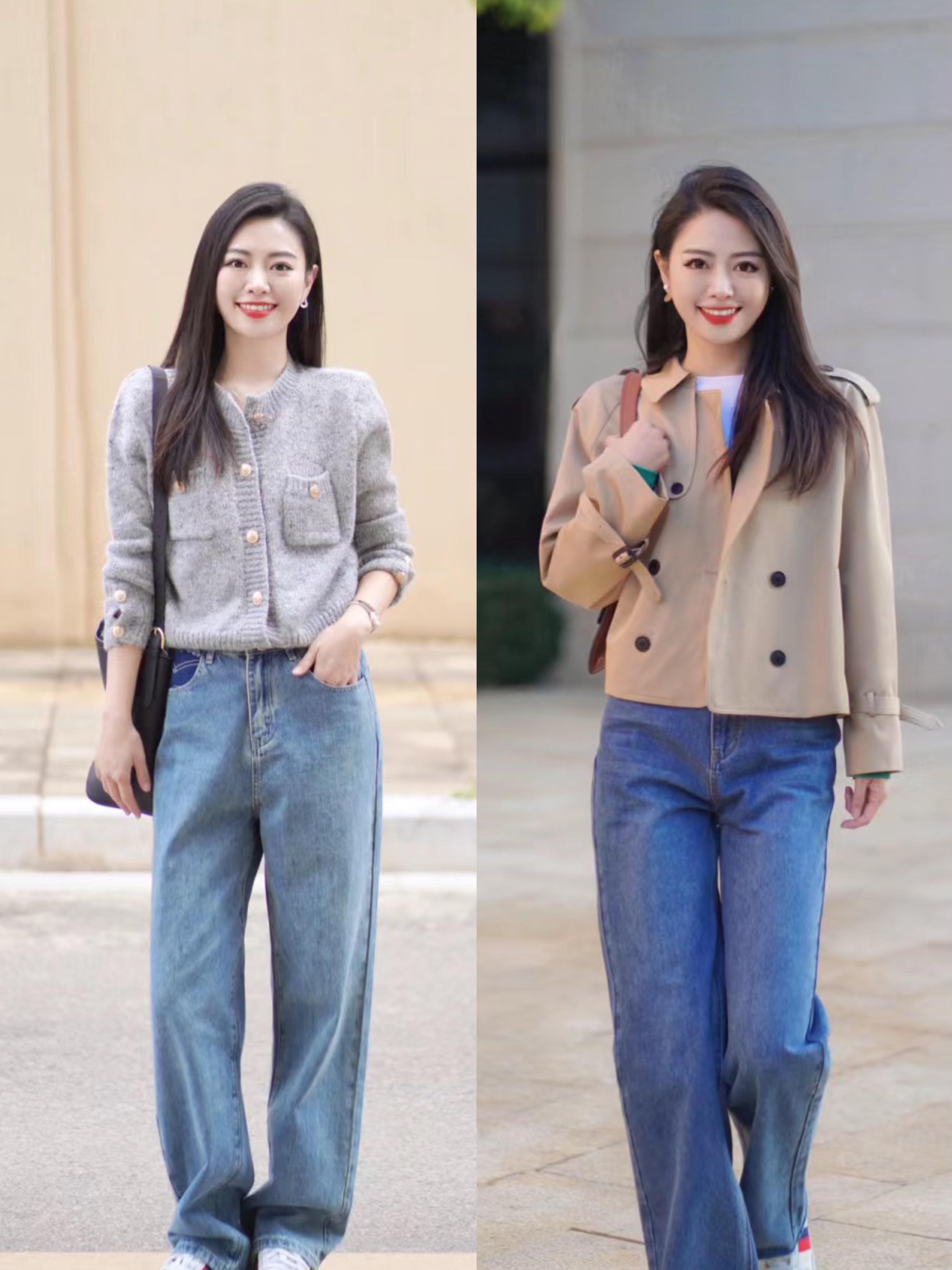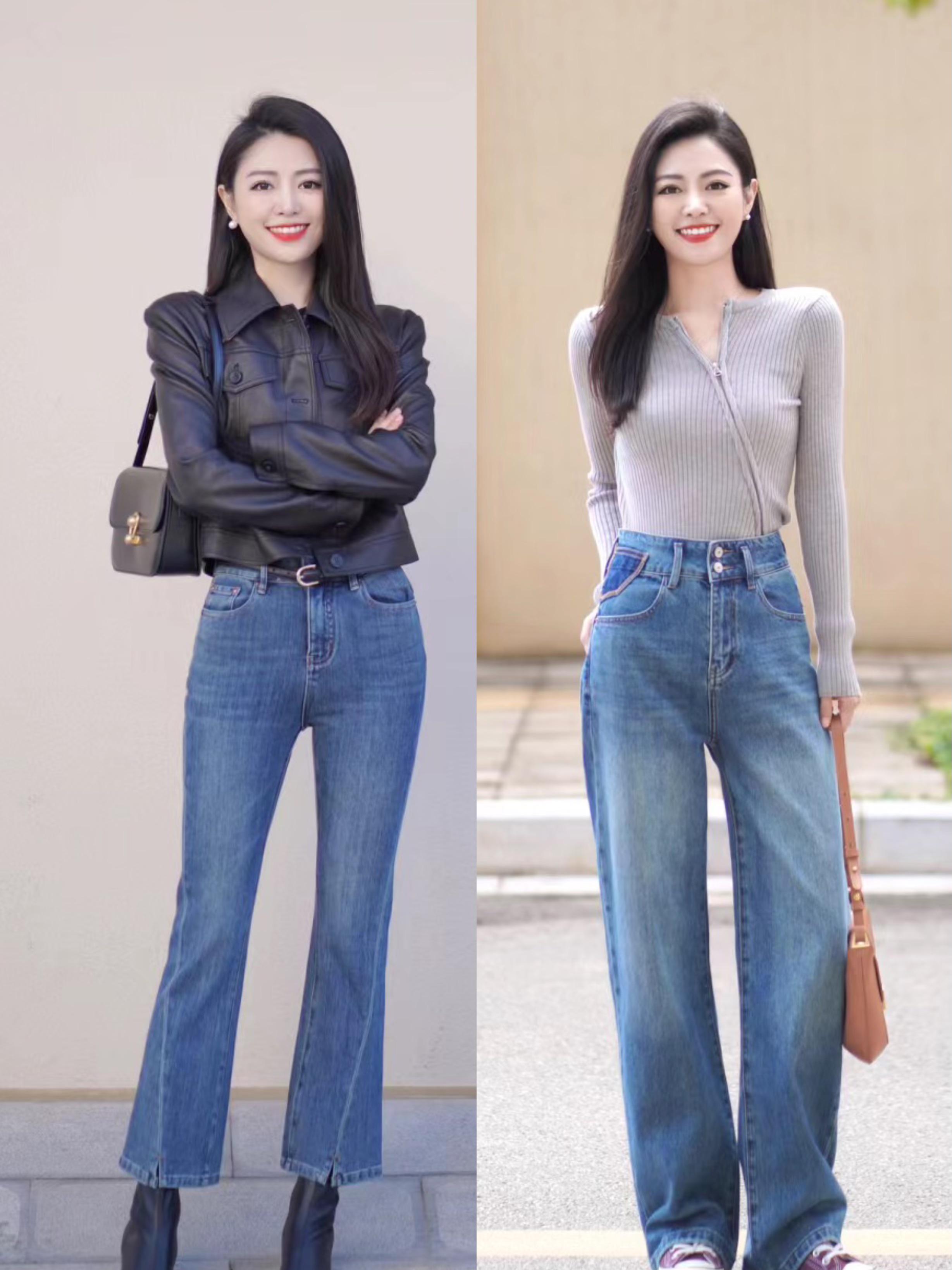 修身打底衫 阔腿牛仔裤