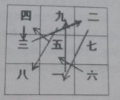 离宫),九飞入一位(坎宫),一飞入二位(坤宫),二飞入三位(震宫),三飞入四位(巽宫),四飞入五位(中宫)。其轨迹为五六七八九一二三四再入中宫,如此飞行完成了一个过程,这个飞行过程称为顺飞。如图3-5所示: