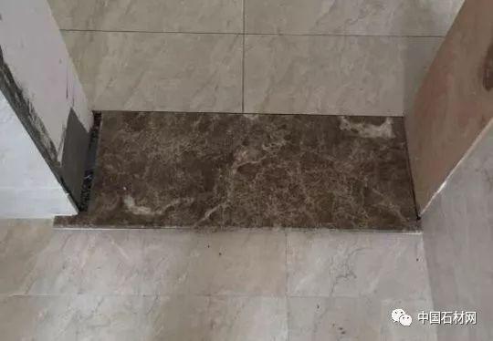每条门槛石切忌两条等分铺设,最好是完整的一块,如果石材幅面限制不能一整条,可分三条:先分一半,然后把其中一半再分两份,铺的时候,两小条在两侧,大条在中间。
