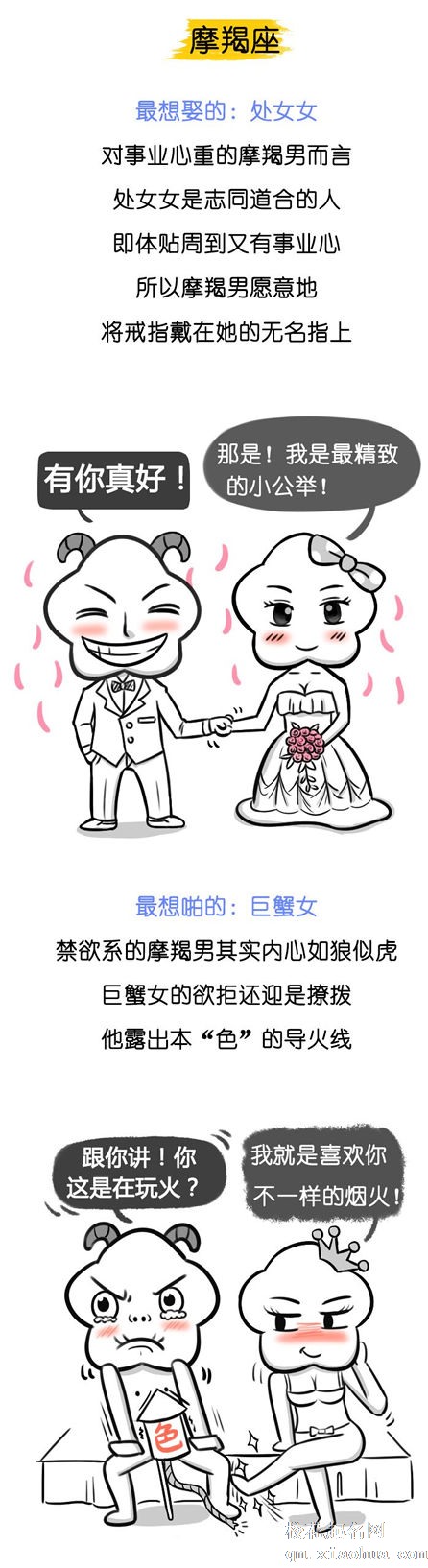 对事业心重的摩羯男而言,处女女是志同道合的人,即体贴周到又有事业心,所以让严苛的摩羯男心甘情愿地将戒指戴在她的无名指上