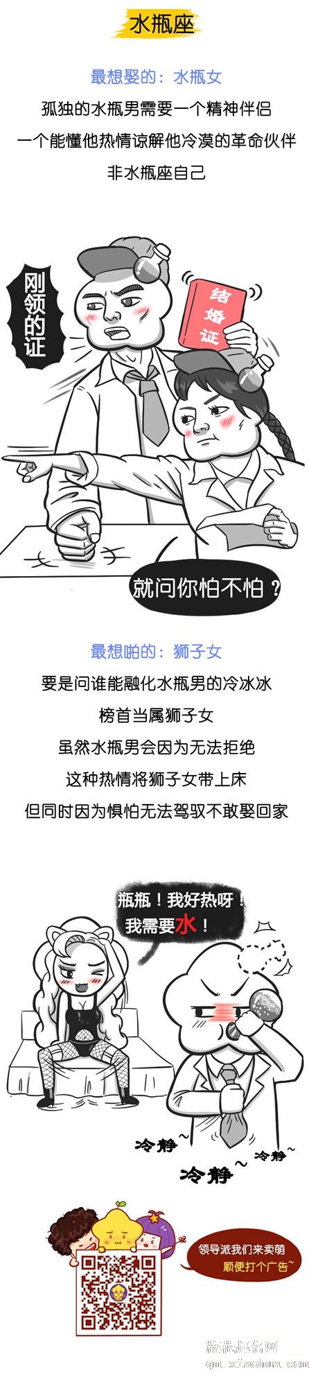 漫画以幽默诙谐的方式展现某种事物,以取得对某件事的讽刺或歌颂,深得人们的喜爱。当星座撞上漫画,这又会是一番怎样的体验呢?下面,就和小编一起走进星座漫画感受吧。