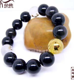 14MM属猴★黑曜石申子辰三奇手链★辟邪招财招贵人