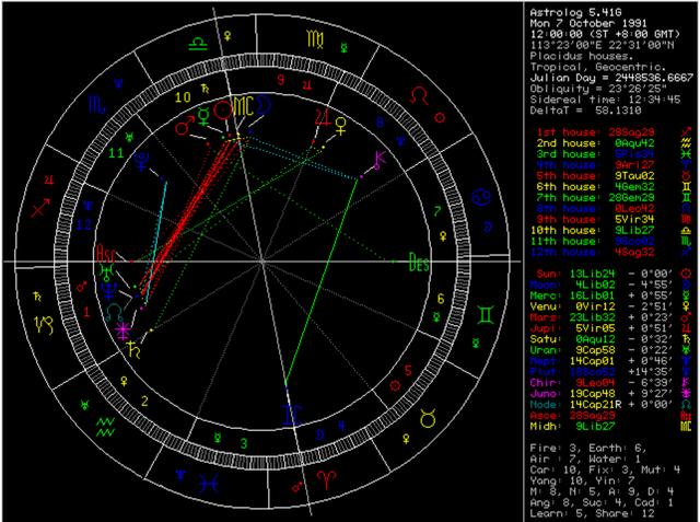从星盘中看,Yamy是太阳天秤,月亮天秤,上升射手。从整个星盘来看,Yamy不管从外在还是思想,都会偏向于天秤座的性格,但是我们先分析上升射手,因为在占星学中,上升星座取的是第一宫“命宫”的宫头。
