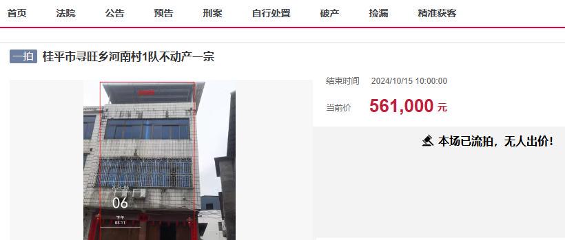 这栋房子第一次拍卖的时候,起拍价是56.1万元,不过没有人报名竞拍而流拍了。