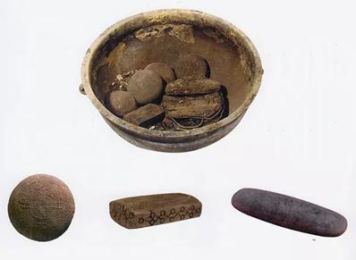 鋗内还放有搓石、漆木盒和漆笥,漆木盒内盛有化妆品。