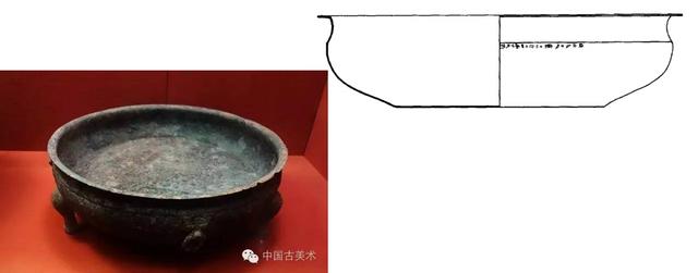 口径18厘米,高6.7厘米。口沿背面刻铭:“食官容五升重十五两十五朱”,上腹部刻铭文“廿”,上腹部刻铭“常食” 。