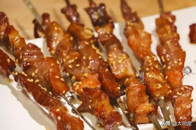 猪肉串配方五斤量,首选梅花肉,腌制方法绿湖白胡椒粉4克。