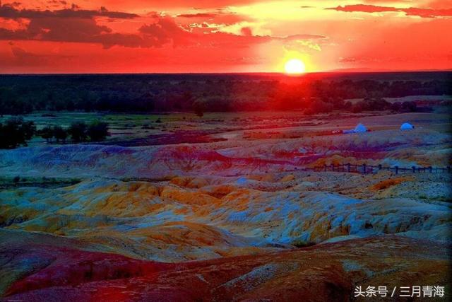 五彩滩一河两岸, 这里的岩石颜色多变,且在落日时分的阳光照射下,岩石的色彩以红色为主,间以绿、紫、黄、白、黑及过渡色彩,色彩斑斓、娇艳妩媚,因此被称作"五彩滩"并号称是"新疆最美的雅丹地貌"。