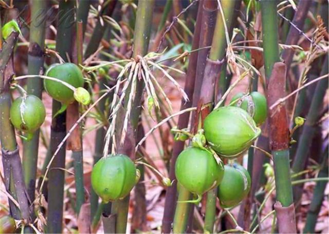 梨竹大概需要50年左右才开花结果,结出的果实形如“鸭梨”,呈紫青色,果肉多汁多液,可以食用。